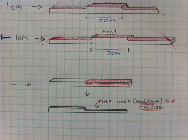 También para la pieza de 4 x 4 mm medir el cable de auriculares para tener una idea de lo mucho que recortarse.