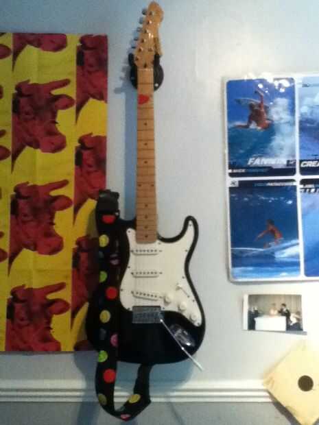 Como siempre estoy en mi cuarto en mi guitarra tenía miedo de que podría hacer caer así que decidió añadir más apoyo. Primero poner la guitarra en el soporte y deje que cuelgue libremente, entonces marca donde llega a la parte inferior de la guitarra con un lápiz