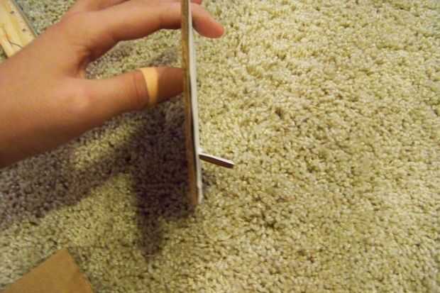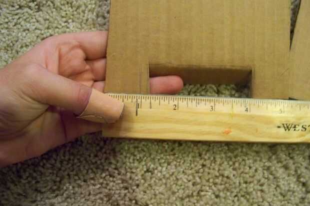 Después de hacer esto usar una regla para medir aproximadamente una pulgada desde el lado de la pieza y haga una marca. Alinear su regla verticalmente con la marca y constituyen una medida de una pulgada y marca, en ambos lados y conectar todos los puntos con líneas. Después de conectar los puntos de cortan dos ranuras donde está la línea vertical.