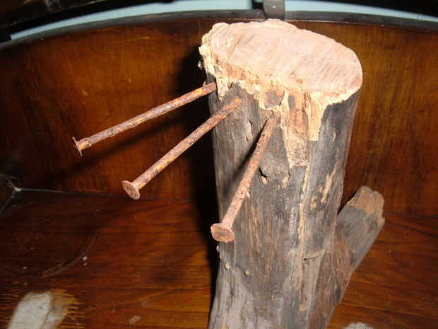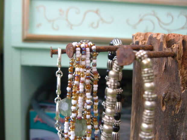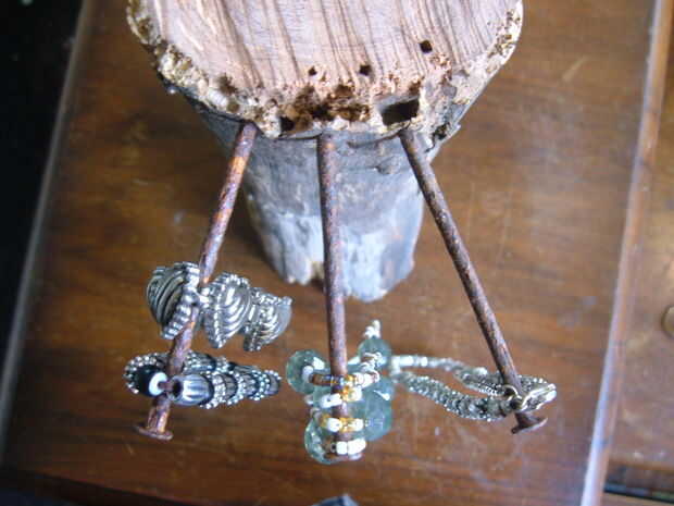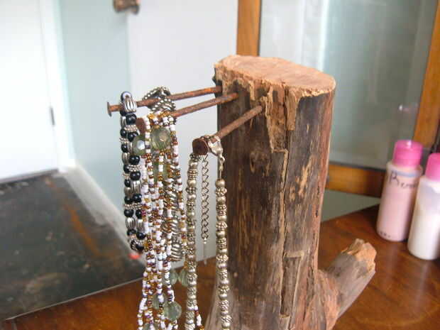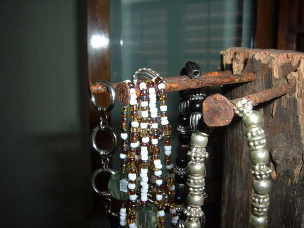 poner algunos clavos oxidados revestidos claro viejo en su lugar deseado. para sostener su jewlry.