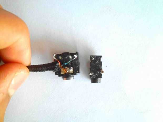 - Pasar el alambre a través de la cubierta externa del conector macho de audio (porque muchos de nosotros olvidan hacer esto y sólo la toma de la soldadura). (Como se puede ver en img 4)