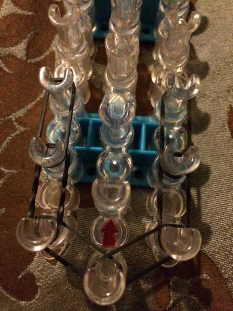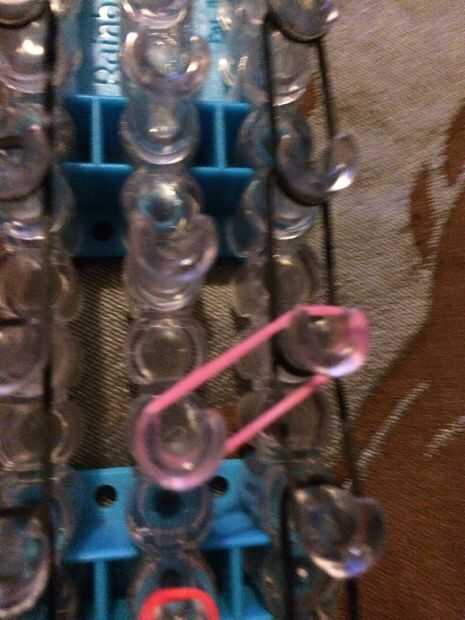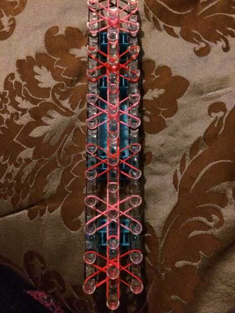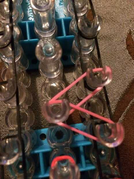 Paso 1: Conseguir las bandas Se necesita:Cualquier telarUn gancho de70 bandasUn clip de c o sPaso 2: Colocar las bandas Colocar una banda de la clavija de la parte inferior en la clavija superior siguiente.Paso 3: Colocar una banda de la primera clav
