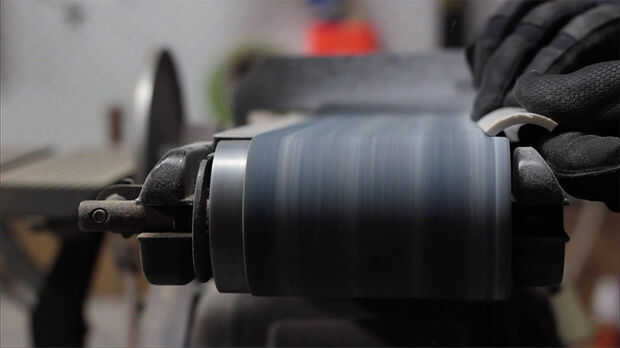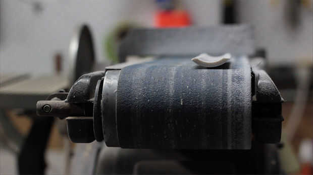 Necesitaba eliminar el ángulo del borde cortado usando una lijadora de banda.