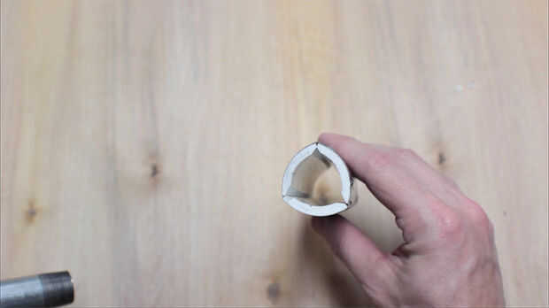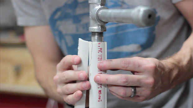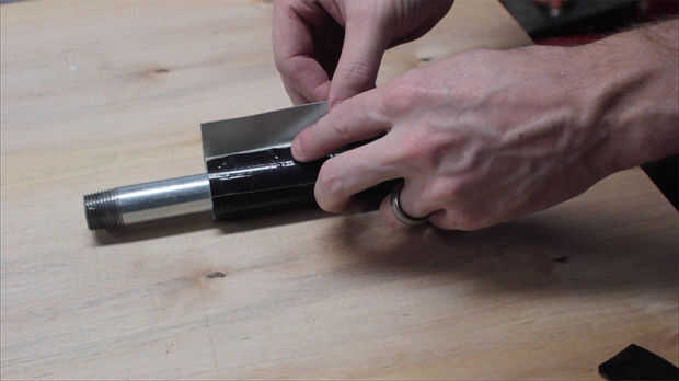Entonces, las piezas encajan perfectamente alrededor de la tubería de acero.