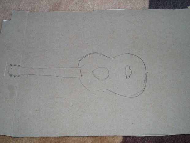 Ahora, lo que me han llamado muy groso es una guitarra acústica, no quería tomar demasiado tiempo haciendo una plantilla realmente detallada, así que paciencia. Y poner tu dibujo en el lado marrón si usas una caja de cereal.