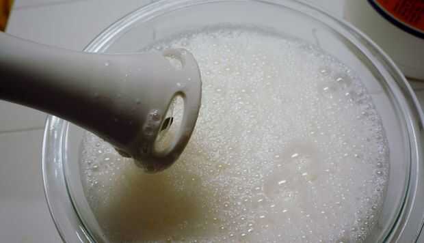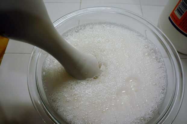 Mezclar con la batidora de inmersión hasta que desaparecen los grumos y la mezcla esté espumosa.