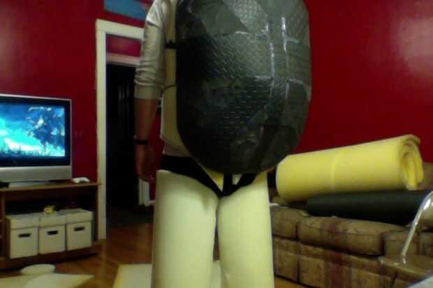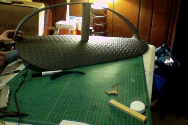 3) ahora, usted cortar 3 tiras de largo ancha de espuma y pegarlos juntos como un «+». Desde allí añades piezas diagonales. (Foto 2)
