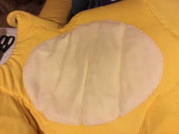 1) ya que tiene exceso tela atada a sus apéndices, empezar a coser todo junto.