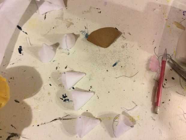 1) dibujar el triángulo de papel y cortar en polar blanco. (foto 6)