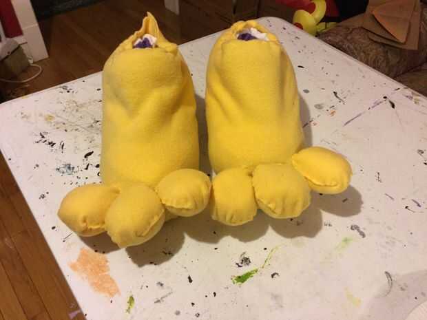 1) obtener el ratón mickley guantes y cubrir con la tela amarilla.