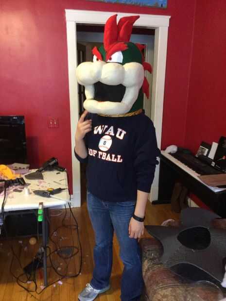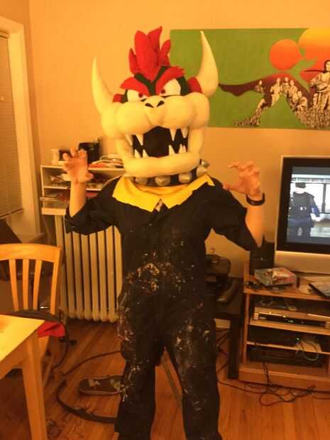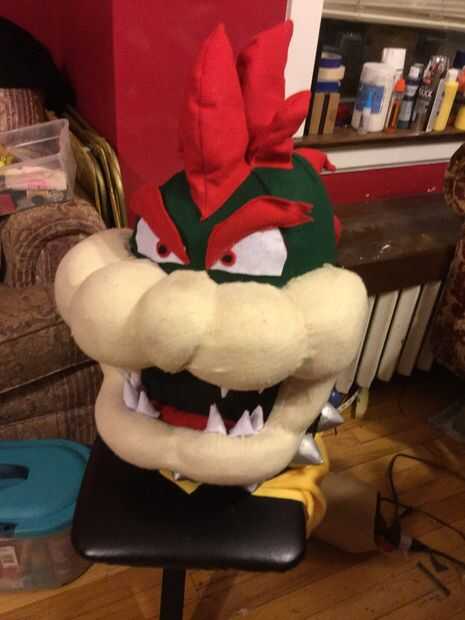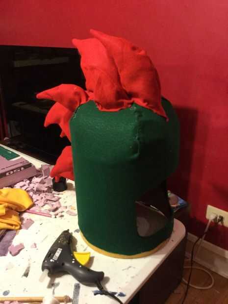 1) obtener a un exceso tejido amarillo y pégala en el interior de la cabeza, como un babero. Esto se meta en el cuerpo del traje propio para que nada del usuario muestra a través de.
