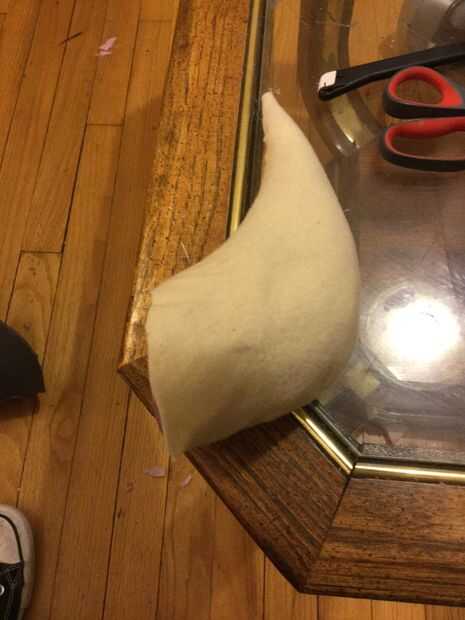 1) como usted hizo con la papada, juntar unos montones de espuma rosada. Hacerse cada cuerno.