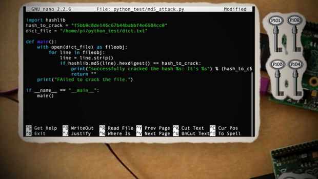 nano python_test/md5_attack.py - Copie el archivo de Python para todos de su Pi.