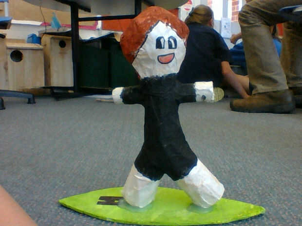 Una vez que ha secado el papel maché, puede diseñar su surfer quieras. Usted puede incluso utilizar algún material del wetsuit. Luego pegamento caliente el surfer sobre la tabla de surf.