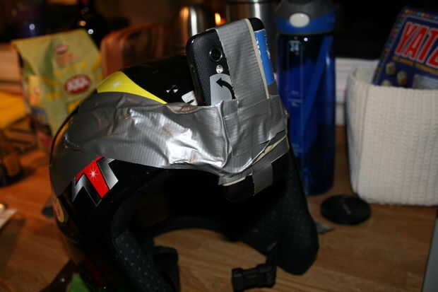 Materiales:TijerasTeléfonoCinta para ductos (cualquier Color)VelcroPaso 1: Envolver el teléfono Decide si quiere que su teléfono entrará en su caso verticalmente.  Si usted desea hacer su caso verticalmente, deje 1/8 del teléfono sobresale de la part