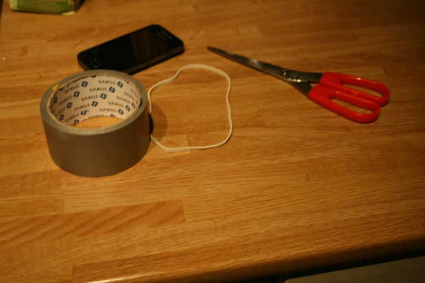 Materiales:TijerasTeléfonoCinta para ductos (cualquier Color)VelcroPaso 1: Envolver el teléfono Decide si quiere que su teléfono entrará en su caso verticalmente. Si usted desea hacer su caso verticalmente, deje 1/8 del teléfono sobresale de la part