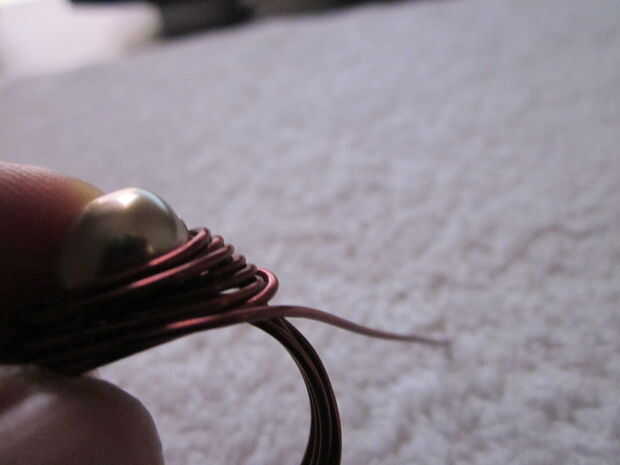 Cómo hacer un Swarovski perla alambre envuelto anillo (9 / 10 paso)