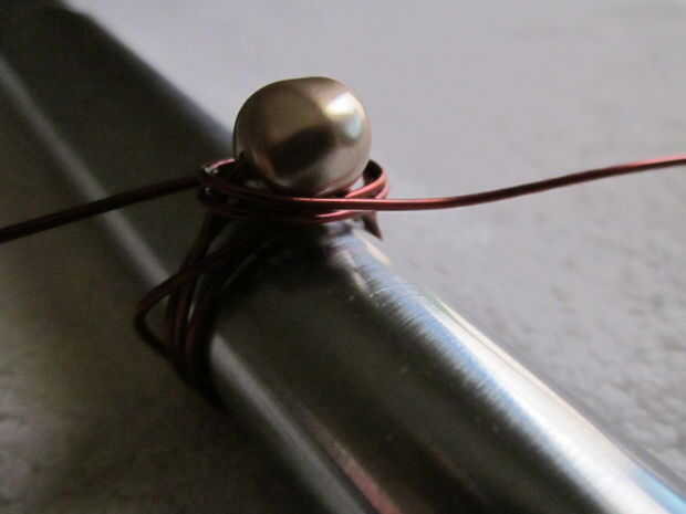 Cómo hacer un Swarovski perla alambre envuelto anillo (7 / 10 paso)