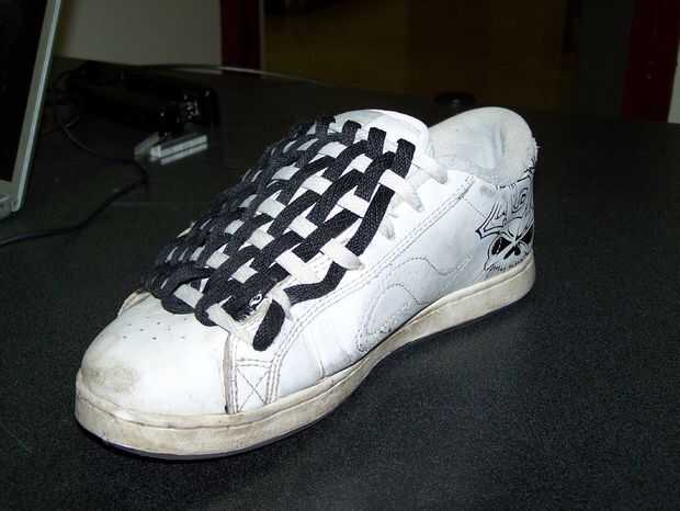 Hacer que tus zapatos viejos nuevos con algún brillo brillante!Paso 1: Materiales reunir Materiales necesarios:Zapatillas viejasTapa de plástico o paletaPegamentoCinta de pintorCintaTijerasCepillo de la esponjaBrilloPaso 2: Desenlazando sus zapatilla