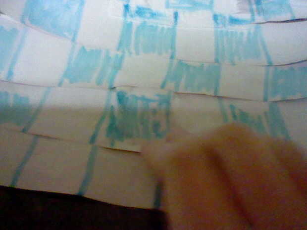 Tomar el contenedor y el marcador. Dibujar algunas líneas en la parte blanca de la envoltura. Colocar algunas cintas en la parte superior del contenedor. (Yo usé cinta de doble palo así que si tienes una cinta echada a un lado pone la envoltura de la cinta). Si tienes otra envoltura dibujar en él y se coloca sobre la cinta que pones en el otro contenedor. Seguir repitiendo hasta que tienes un tablero de 8 longitud de envoltura. P.d.: Asegúrese de que tener ocho espacios en cada envoltura. P.P.S. Cuando saqué estas fotos estaba casi terminado.