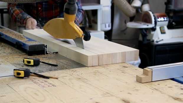 Al día siguiente aserrado cuatro tiras de arce y cuatro tiras de nuez. El espesor de todas las tiras después de cepillado fue 50 mm.