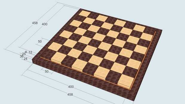 Hice los dibujos. El cliente quería plazas de 50 mm (aproximadamente 2"), así que hice 400 x 400 mm juegan superficie y 458 x 458 mm tamaño total. La frontera fue menor de superficies. Decidí usar el nogal y el arce de juego superficie y nuez y cereza para la frontera.