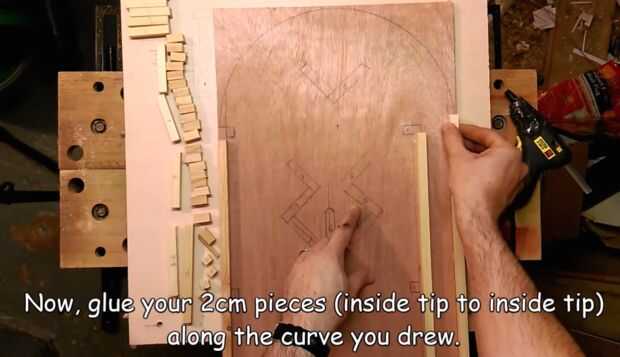 Ahora, toma su colección de piezas de 2cm y comenzar a pegarlos en su lugar en la línea.