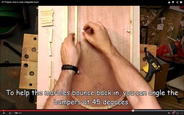 Si desea animar a mármoles a rebotar hacia atrás en los lados, pegar tus piezas tope a 45 grados hacia el borde.