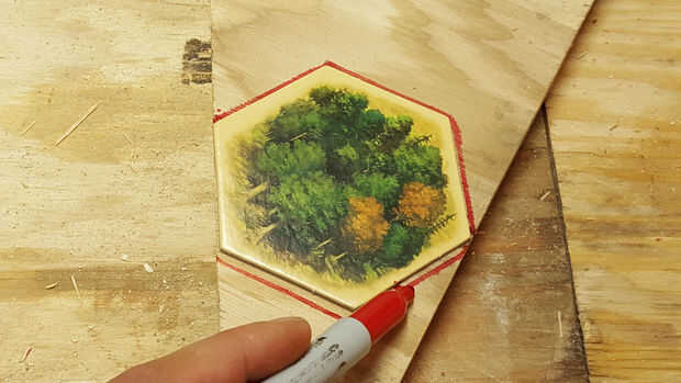 • Tomar una pieza del juego de una Colonos de Catan del tablero y trazar sobre algunos restos de madera. He unido a una imagen que muestra las dimensiones si no tienes el juego. Crédito de la imagen: engineering.purdue.edu
