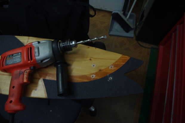 En primer lugar encontrar que el derecho de broca para el trabajo. Una vez más, pruébela sobre un trozo de madera para asegurarse de que el hardware (las tuercas y los pernos) puede llegar a través de la madera. He encontrado un poco que funcionaba pero no estaba marcado, lo siento que no lo tengo.