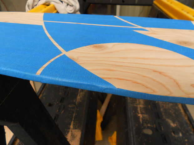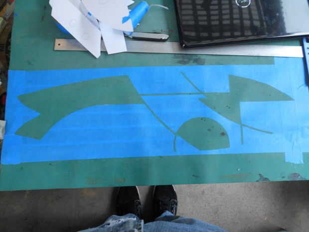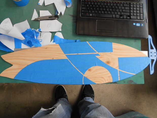 ¿Recuerdas esa plantilla que impresión? Traerlo bien atrás y utilizar para tu diseño de cinta de pintor de corte. Cinta de pintor mantendrá lo que se están pintando (acrílico, tinte, spraypaint) entren en las otras partes de la placa. Tenga mucho cuidado y tómese su tiempo aquí! Cortar con un X - acto, y usted debe ser fino. Cuando lo tienes cortado, colocar sobre la tabla y presione hacia abajo realmente apretado. Te Pele bellas (dado no comprar la cinta de mierda) y debe dejar una línea limpia a lo largo de su borde. : D