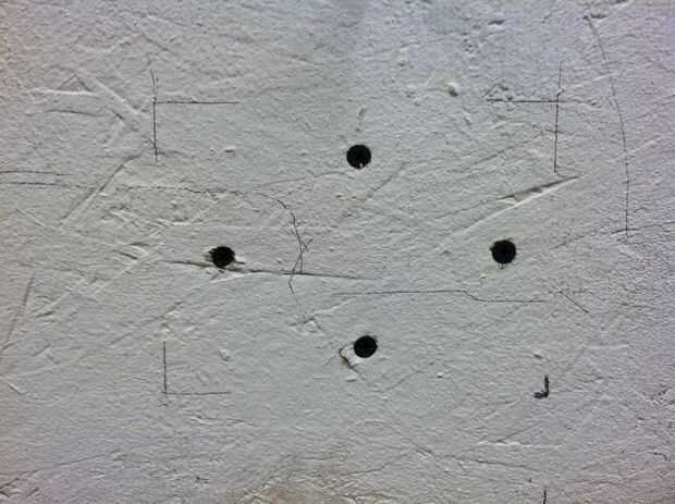 Atornillados los soportes superior primero colgaría y desde allí hice la parte inferior unos. Otra vez usé mi mano para conseguir una idea aproximada de dónde atornillar.