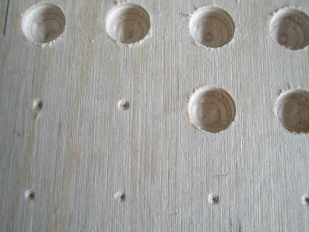 Una vez que se puede perforar el tablero marcado. He montado en la nariz redonda broca en el taladro de columna y establecer el tope de profundidad en el taladro. Sugiero practicar en un pedazo similar de madera para os taladro a la velocidad correcta para lograr un buen acabado con la broca.