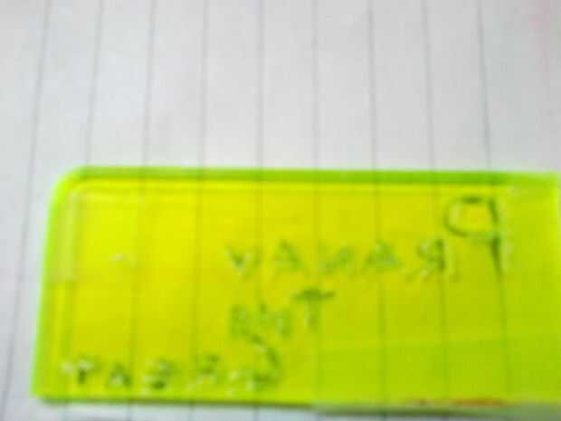 Luego coloque la placa el (uno que hicimos en el paso anterior) en el papel y la cinta de la esquina así que eso él no se mueve mientras talla. Después talla flip su tablero y se verán como figura (6)