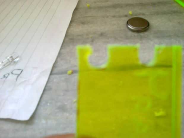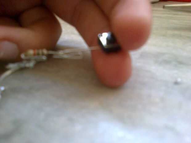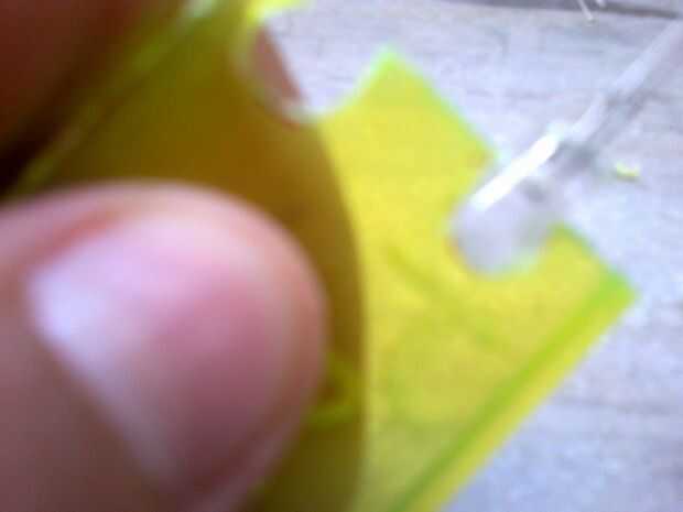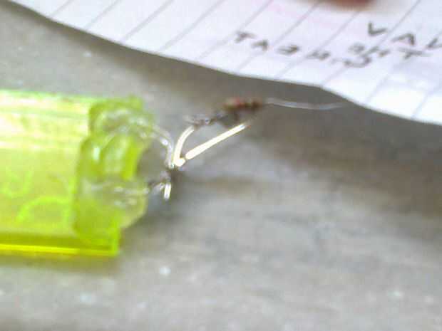 pegamento los leds y el cable del LED como se muestra en la foto (5) Nota he puesto los leds en paralelo, también yo he soldado una resistencia en el positivo de led y un interruptor de alambre y conectar con pila de 9v