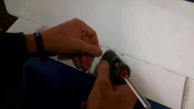 Colocar las costillas de la superficie de sustentación en la posición deseada de la porción de papel de la Junta de espuma y pegamento hacia abajo usando una gota de pegamento caliente.
