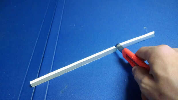 Tomar la tira de espuma que fue cortada en el paso 16 y corte de las longitudes de los medidos en el paso 17. Asegúrese de hacer cortes de 90 grados.
