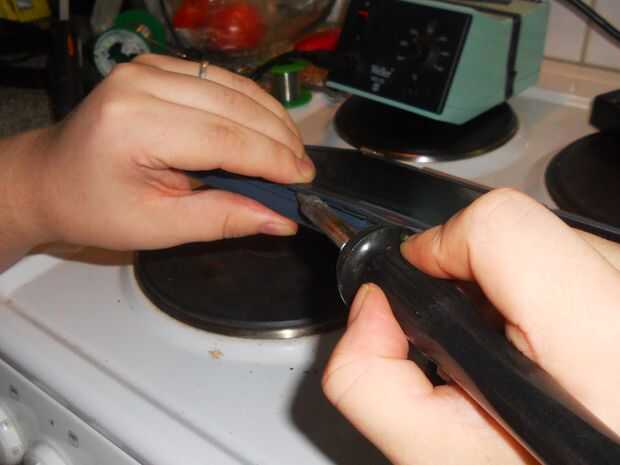 Calentar el soldador unos 240 grados y empezar a soldar el plástico juntos.