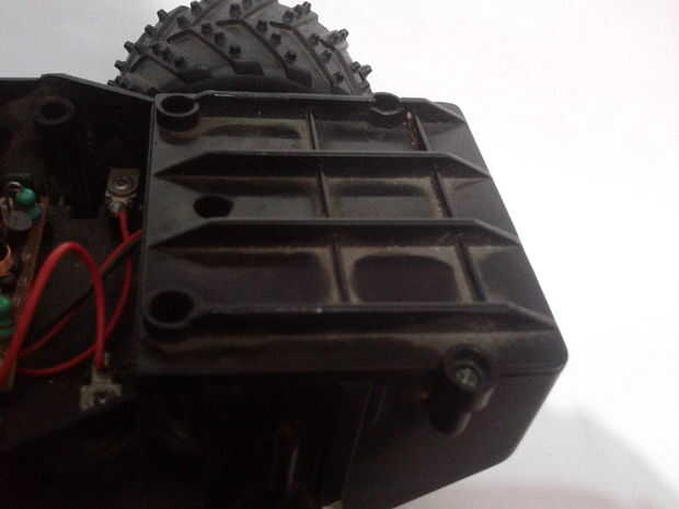 obtendremos el motor de la caja de cambios del coche de RC, tome el motor hacia fuera de la caja de cambios con el destornillador y saque el engranaje del motor.