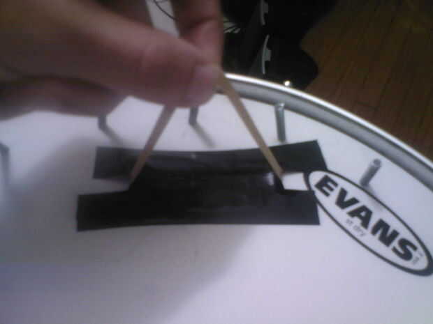 Agarra una goma y poco de cinta (cinta eléctrica es el mejor - lo suficientemente fuerte para mantener pero luz suficiente no para destruir la vibración de la cabeza) y escoger un buen lugar en su trampa. Tratar de encontrar un área que normalmente no golpear con un palo, pero es todavía lo suficientemente cerca para llegar con su mano derecha o izquierda. Firmemente hacia abajo la goma de la cinta y darle un pluck. No es mucho pero al menos es un nuevo sonido para incorporar.