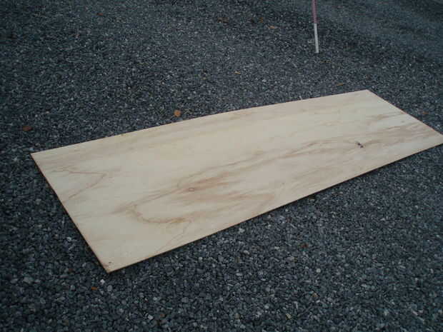Whoa, esto puede tomar mucho tiempo! Pero cuando finalmente haya terminado con las ranuras, podrá relajarse con un largo, fumar... ducha de agua caliente con su madera. Mojar su impregnación de la madera, con el agua más caliente que puedes encontrar (¡ no hirviendo!) y realmente conseguir que pesado con el agua. Ahora, podrá doblar cuidadosamente la madera con las ranuras en el interior. Encontrar algunos tirantes, preferentemente algunos utilizados para el transporte. Durante mucho tiempo las correas de nylon, son los mejores. Junto con un cambio inteligente, doble la madera, de modo que los extremos de la capa interna están enfrente de los extremos de la capa externa. Mantenerlos junto con las correas y tal vez algunas abrazaderas. Una vez más, la madera contrachapada puede actuar diferente a la mía. Déjelo secar durante una semana.