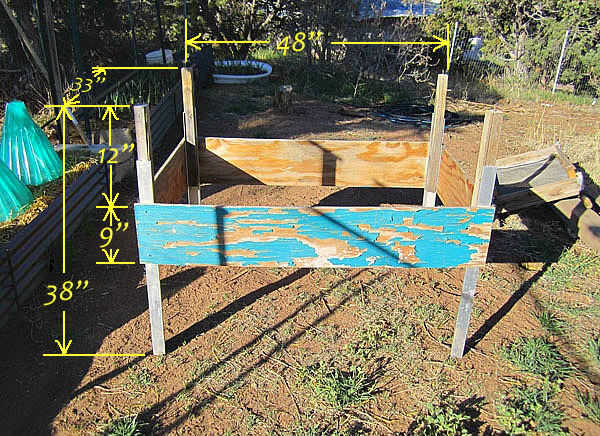 La base levanta la bandeja para tamizar.  Debe ser resistente pero también más fáciles de llevar alrededor.  Usé mi favorito materiales de construcción para este proyecto-cosas que tenía por ahí y tornillos drywall.  Utilicé aluminio ángulo en las esquinas como posts porque es rígido y ligero y agradable.  2x2s funcionaría muy bien.  La madera contrachapada en los trozos horizontales debe ser bastante amplia para ayudar a apoyar.  En las esquinas de cada uno de los postes puse tornillos de 3 pulgadas para que pase el cable de la bandeja de encima.  Usted necesita sólo de un lado pero esta manera es más versátil.