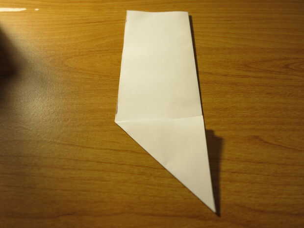 Doble el pedazo de papel hacia abajo, por lo que es un rectángulo largo. Luego tomar las esquinas y doblar hacia el otro lado y revelar, lo mismo al otro lado. Ahora debe tener una "x". Tomar ambos lados de la "x" y llevarlos a la mitad, luego aplanarlo y hacer lo mismo al otro lado.
