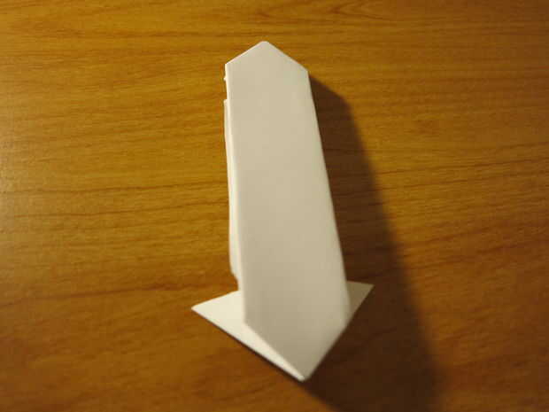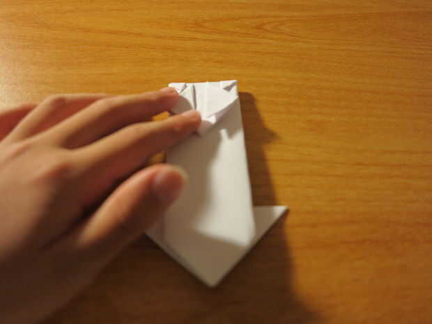 Elegir un lado y doblar dos esquinas a la mitad pero dejan un hueco en el medio y depende de cuán grande quieres el orificio para el cañón. Luego Dale la vuelta y tomar de ese lado se dobla las esquinas en la parte media trasera y doble la una parte posteriora. La primera de ellas dobla debe ser en la parte inferior y la otra es en la parte superior, la aplane lo.