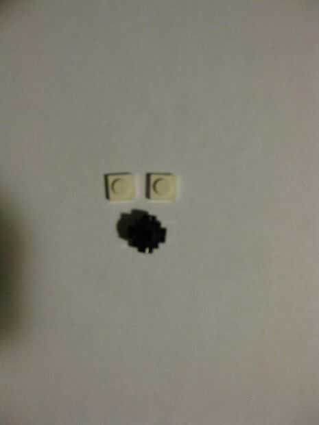 En primer lugar, coge 1 ladrillo de 1 X 1 con 4 postes de madera alrededor de ella y 2 piezas de 1 X 1 y poner el 2 piezas de 1 X 1 frente a uno del otro, en el ladrillo de 1 X 1 con 4 tacos.