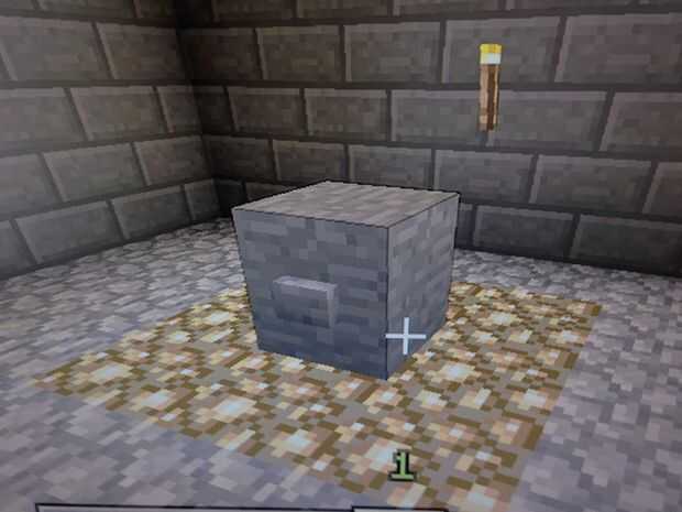 Coloca un botón de piedra en la parte delantera del bloque de piedra