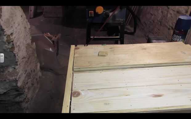 Taladrar un agujero de aproximadamente 1cm desde el extremo (lo suficientemente amplio para un tornillo de paso), un orificio piloto en la base de la estructura principal de la TARDIS. Lije los bordes del extremo del agujero del marco por lo que se redondea como un semi-círculo (con el agujero en el centro).