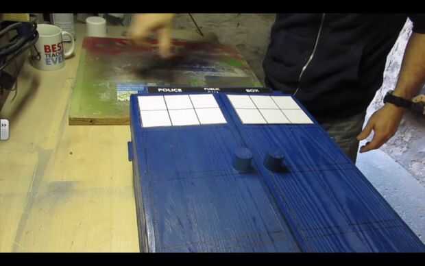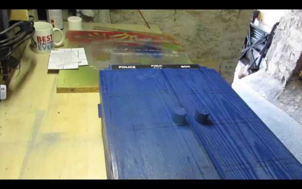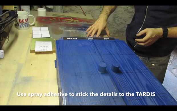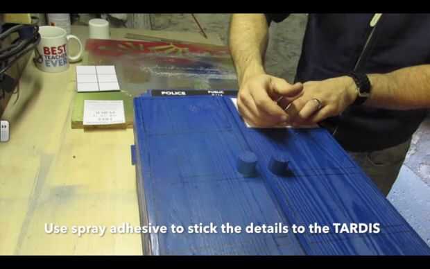 Primero, descargar e imprimir las letras de la TARDIS y pegarlo en la tarjeta de una caja de cereal. Cortar las piezas y dejar de lado.