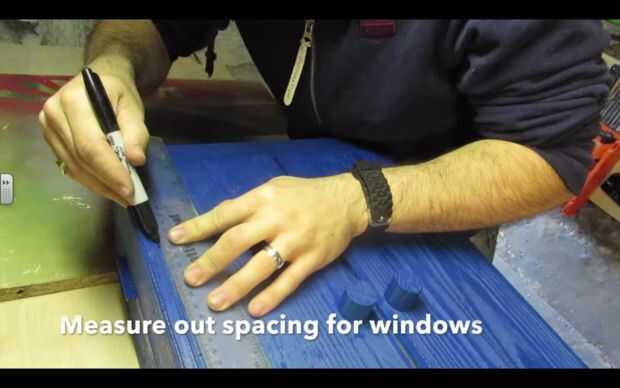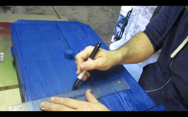 A continuación, utilice un rotulador para medir hacia fuera de los rectángulos de donde son los paneles en la TARDIS. Si se mide en de los bordes 1cm todo el camino a lo largo, marca a 1cm, 11cm, 12cm, 22cm, 23cm, 33cm, 34cm, 44cm, 45 cm. medida a lo ancho de las puertas y usted debe tener 4 rectángulos!