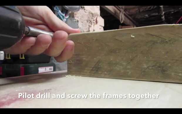 A continuación, perfore orificios piloto en base piezas a través de los lados del marco y atornillar las piezas del marco.